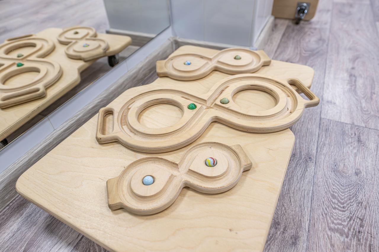 1. Упражнения на развитие координации и баланса. Мы используем специальные упражнения, помогающие ребёнку научиться чувствовать каждое движение. Применяются балансировочные платформы и подушки для тренировки устойчивости и проприоцепции, а также дорожки с различными покрытиями, стимулирующие работу стоп и способность адаптироваться к изменяющейся поверхности.